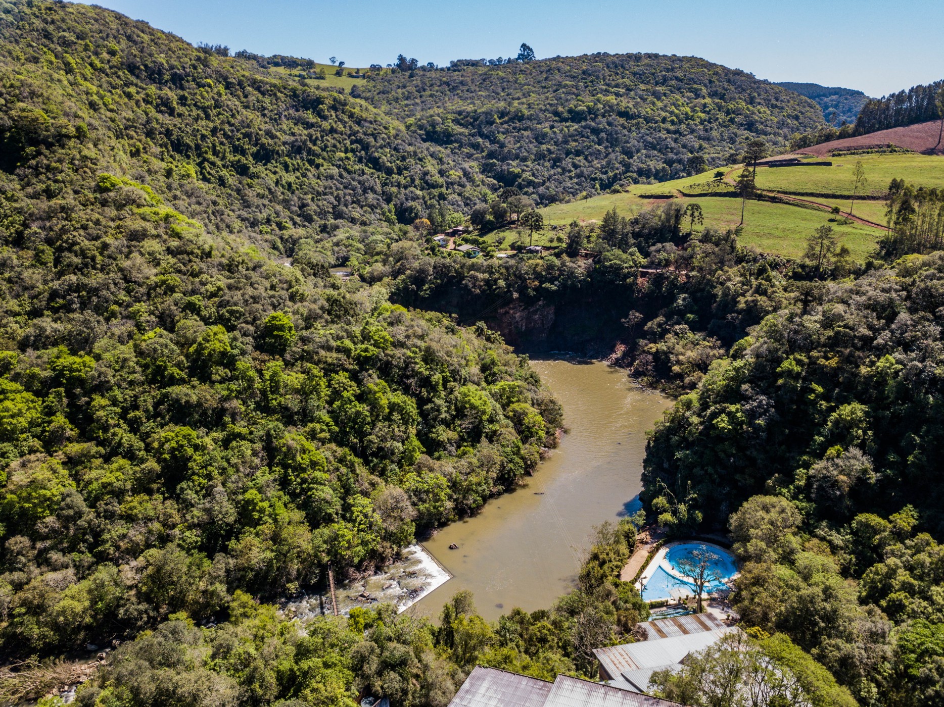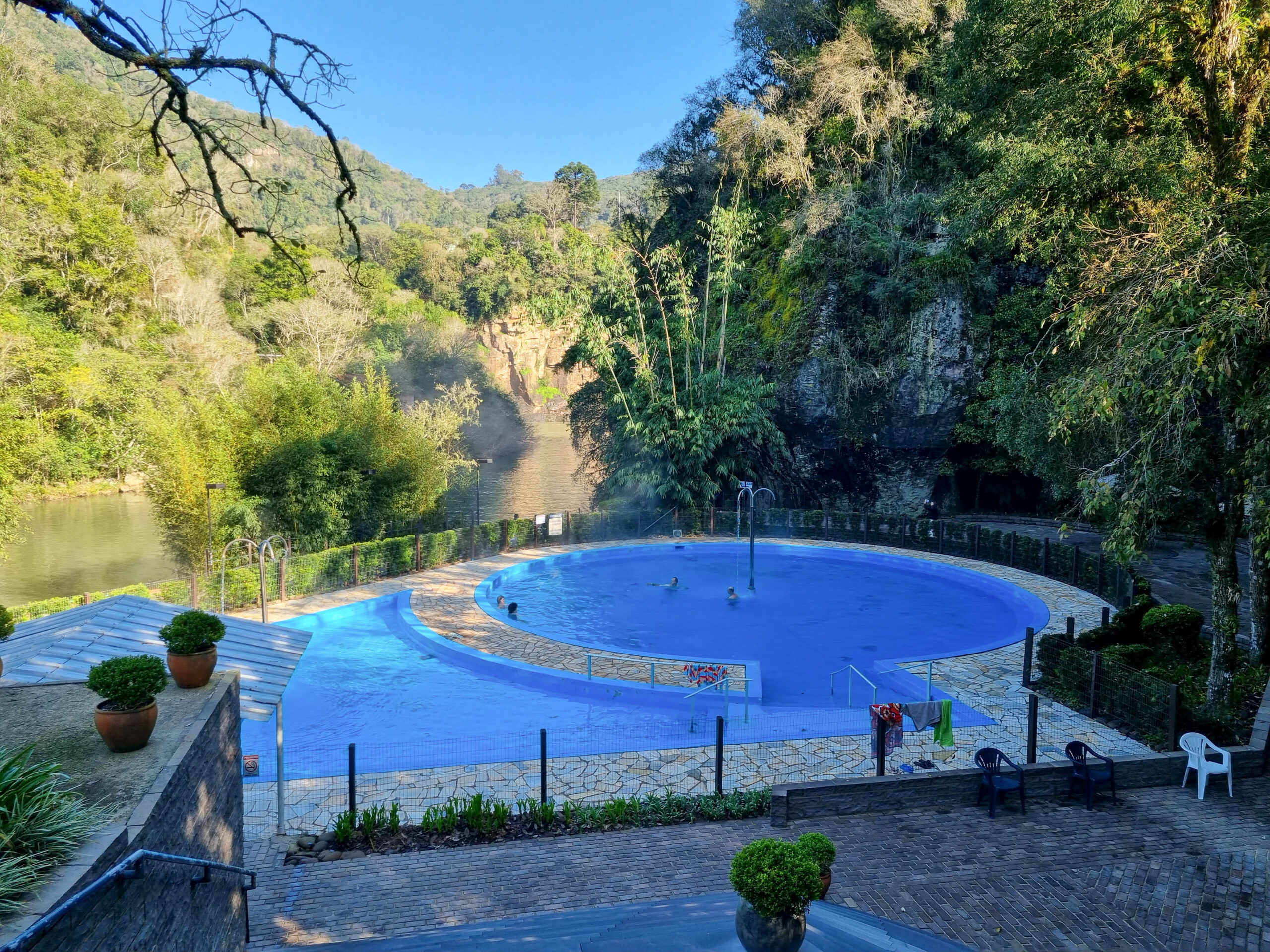 Com águas que brotam naturalmente a 41 °C, o parque conta com piscinas internas e externas em meio a uma paisagem deslumbrante de mata nativa e paredões de basalto. O ambiente proporciona relaxamento, renovação e tranquilidade — perfeito para quem busca descanso ou para quem quer explorar a natureza da Serra com conforto.
