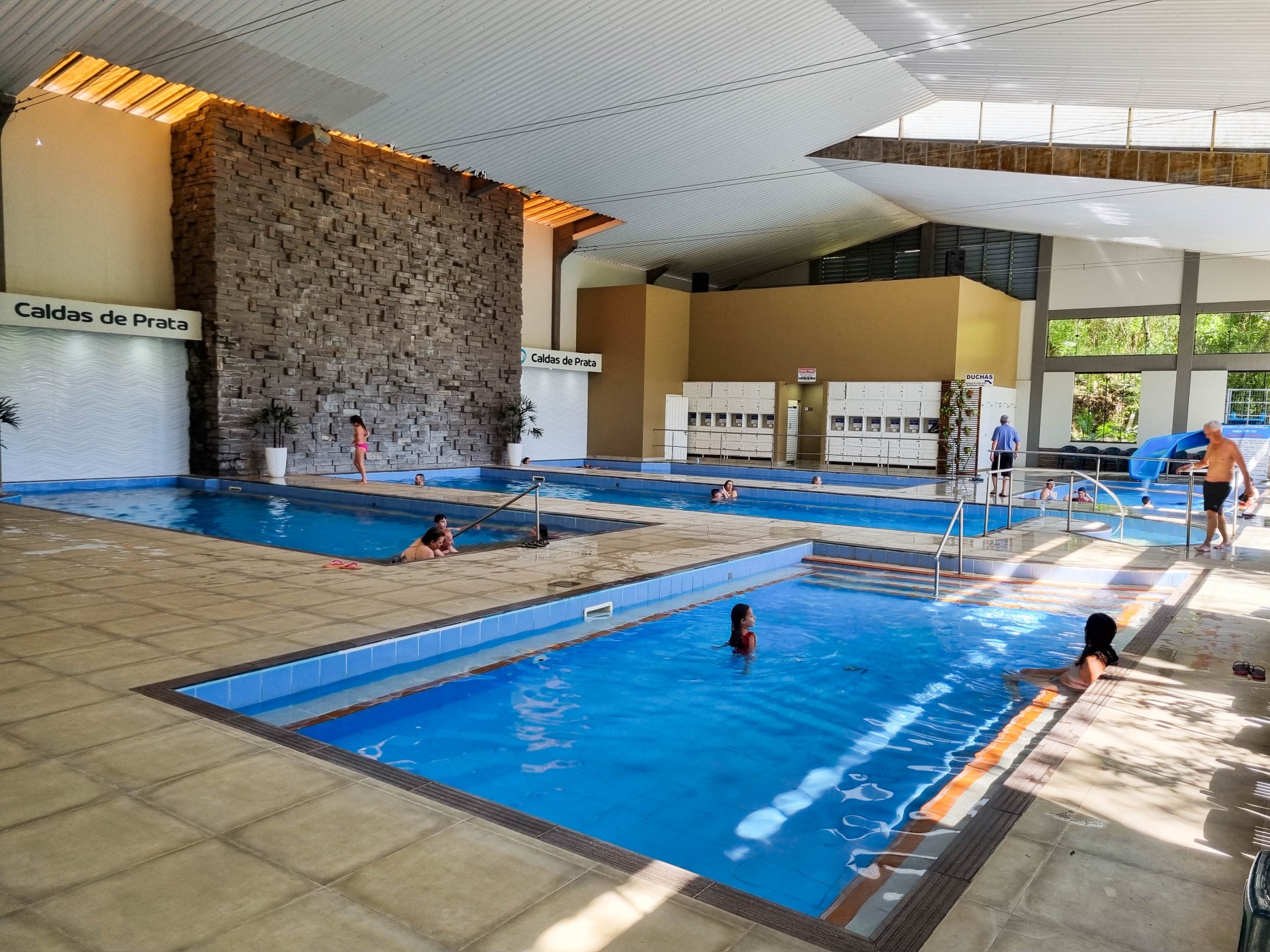 As águas brotam a uma temperatura de 41ºC, sendo que nas piscinas internas ficam em torno dos 35ºC e nas externas em torno de 30ºC.