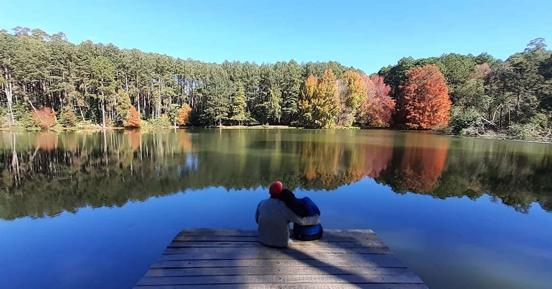Há também dois lagos para visitar durante o percurso, o Encanto Mágico da Paz e o Espelho do Céu, com decks e lindos patinhos. Nesses lagos há também o incrível Pinheiro do Bréjo, uma árvore conífera que dá suas folhas laranjas, e com reflexo nos lagos, somam um cenário de ensaio fotográficos e books. O lugar é perfeito para descansar, ter boas conversas, contemplação da natureza e até momentos para descanso da mente e corpo.