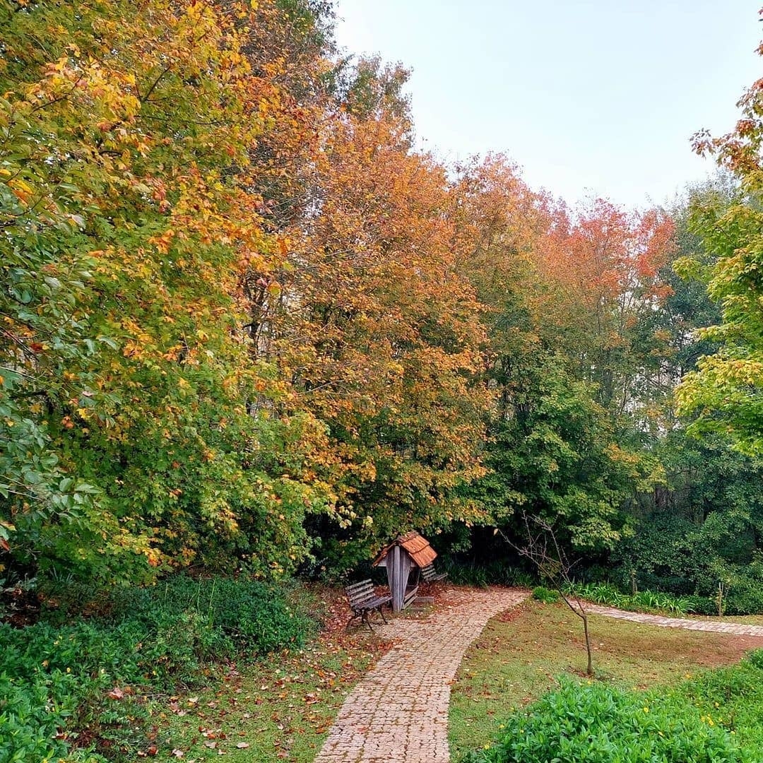 Em meio ao caminho, você vai contemplar cerca de 2.100 espécies, entre árvores, arbustos, forrações, tanto nativos, quanto exóticas, que foram plantadas há muitos anos. Árvores que vieram da ÁSIA, Europa, Oceania e América do Norte, que hoje fazem a propriedade ter lindas cores e até mesmo, aromas da natureza.