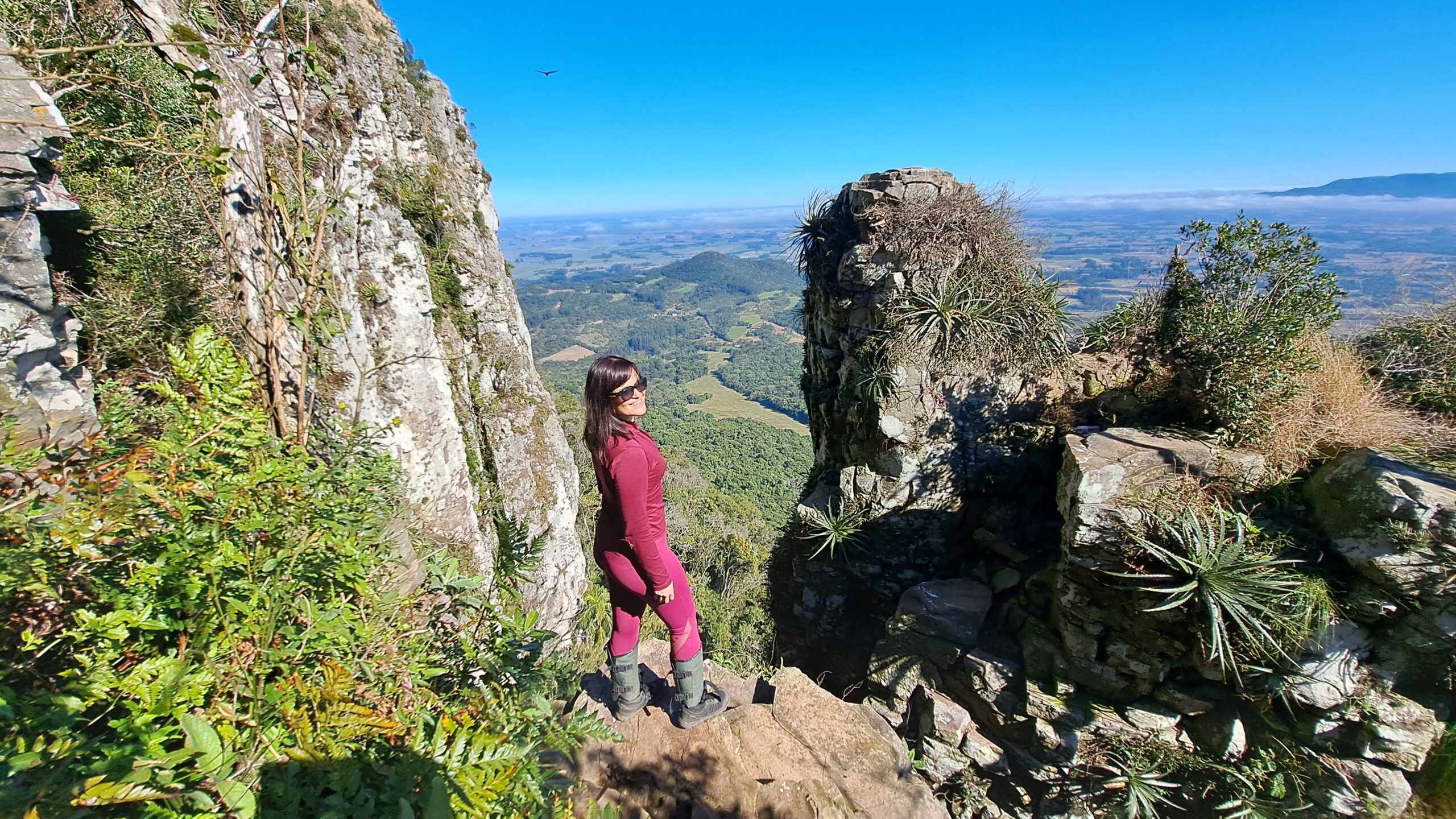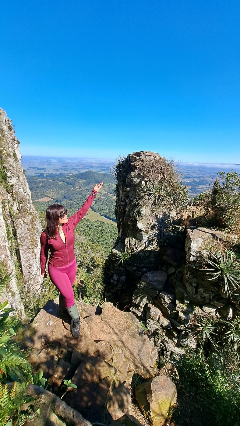 Ao chegar no topo, o terreno é bastante plano e tranquilo, podendo assim ser visitado 4 mirantes, ou seja, você terá diversas janelas na natureza para observação da planície do município, tendo visão ampla e periférica. Há também uma rocha no local, que é chamada de “Chaminé“, em que se assemelha a uma chaminé. Neste ponto, você também consegue visualizar a grandeza do monte, tendo uma visão lateral do seu paredão de aproximadamente 500 metros.