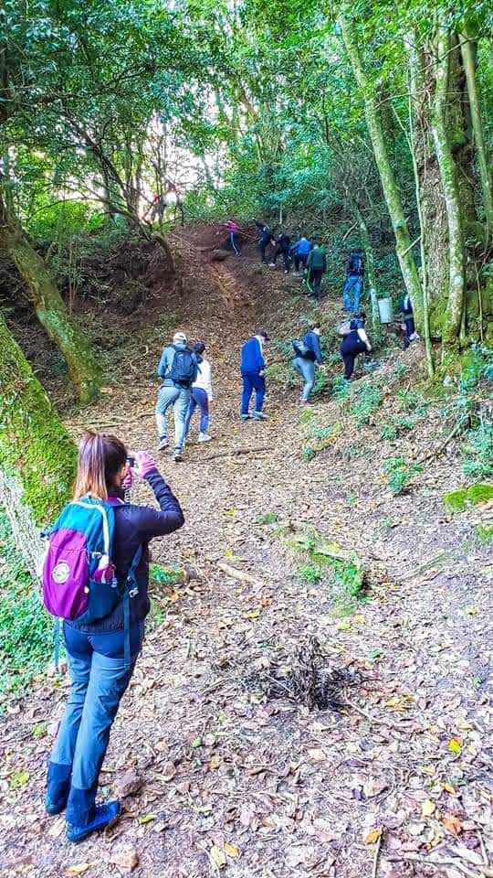 Percurso/terreno: Caminhada em caminhos e por trilhas, mata semi-aberta e fechada, raízes, barro, grama, calçadas. Ambiente natural, com terrenos irregular e exigência de boa locomoção. Bom condicionamento físico, apto a caminhar e apto para atividade física. Riscos de queda da própria altura, escorregões, traumas, picadas de insetos e alergias.